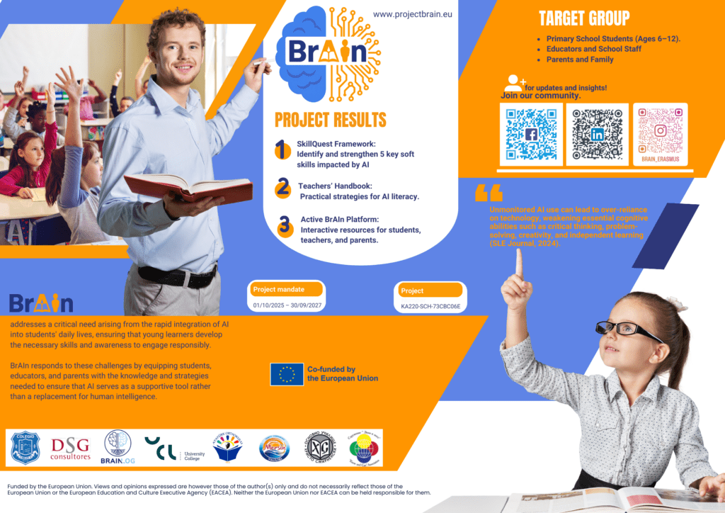 The BrAIn partnership continues to move forward, and we are pleased to share a key communication milestone: the official BrAIn project brochure has now been finalized and is ready to be shared with educators, parents, and stakeholders across Europe.