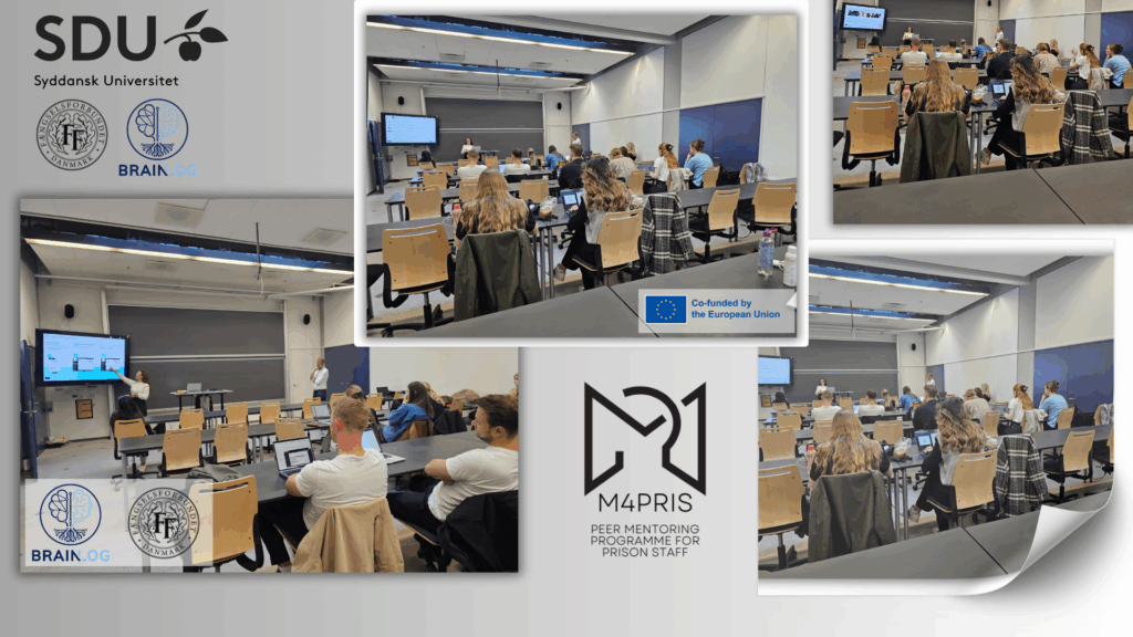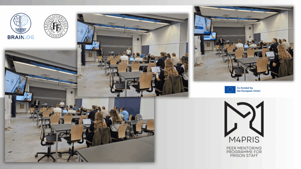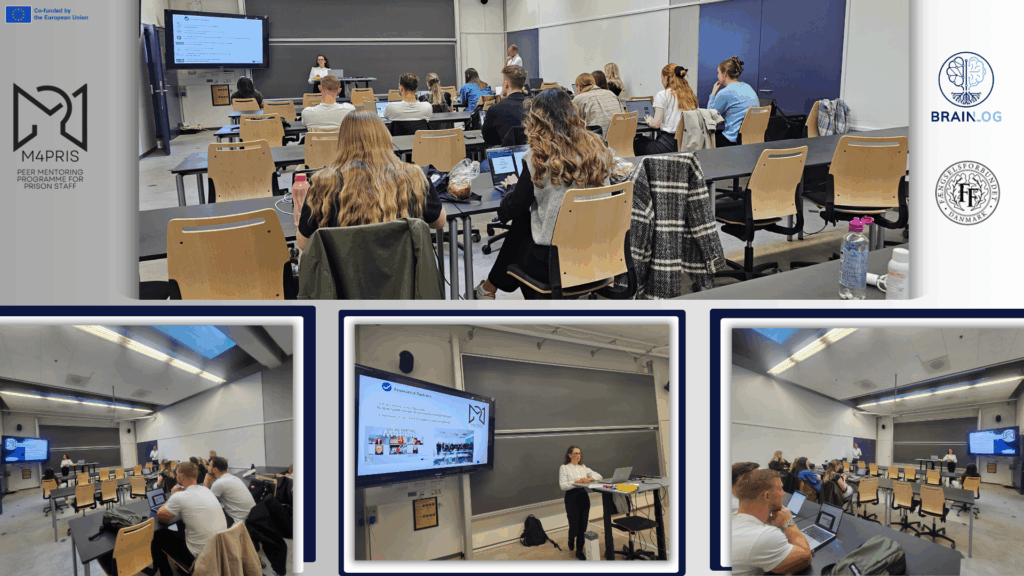➡️ Students were introduced to the M4Pris project, its core outputs (mentoring blueprint and peer mentoring programme), and its impact in Denmark and across the EU, with insights from the Danish Prison Officers Union and the project coordinator, BrainLog.