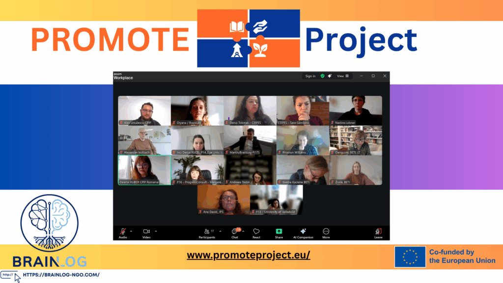 Today, the Promote Project consortium held an online meeting focused on the document “PROMOTE Curriculum Development Plan (WP3),” which served as the main reference point for discussion.